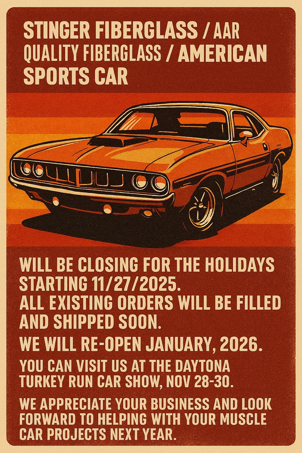 Stinger Fiberglass Designs, Inc. Parent Company of: Stinger Corvette, AAR Quality Fiberglass and American Sports Car Designs websites